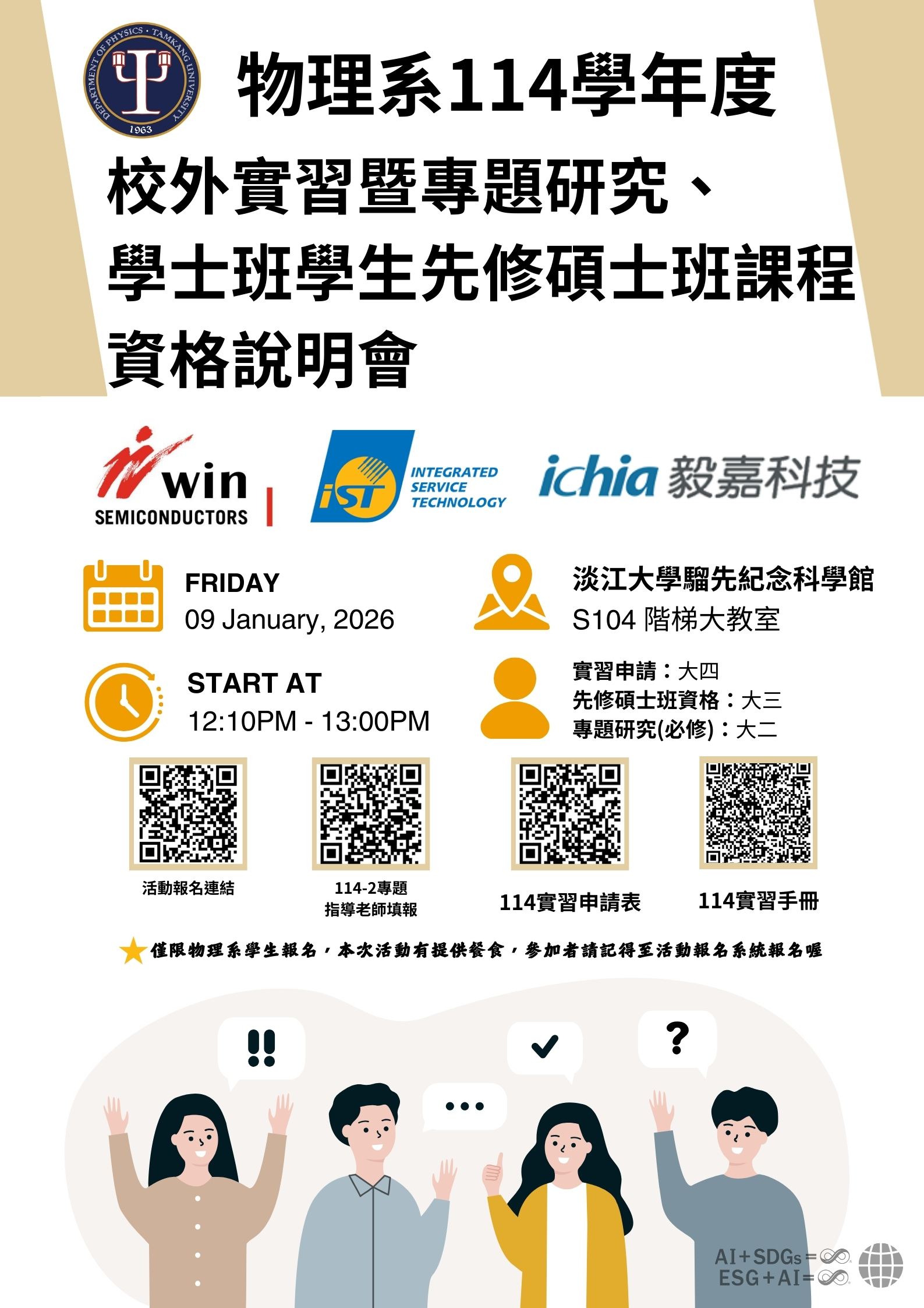 要參加的話一定要記得到系統報名喔!(※僅限淡江物理系學生參加): https://enroll.tku.edu.tw/course.aspx?cid=phys20260109