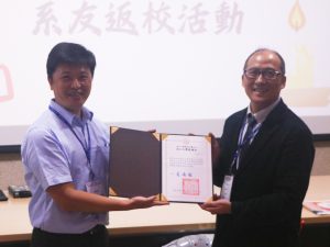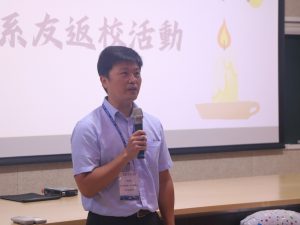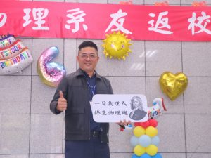 隨後,莊程豪系主任的報告掀起了全場的熱情。他有趣地描繪出物理系的最新發展成就,讓與會者不禁為母校在國際學術舞台上的卓越表現感到驕傲與自豪。緊接著的經驗分享環節,今年的「傑出系友獎」得主郭俊良學長與曹正鵠學長相繼上台,分享他們在專業領域中的非凡成就與奮鬥歷程。郭學長從科研創新談起,詳述了如何藉由在校內所學物理邏輯轉化成突破創業瓶頸,令人欽佩;曹學長則娓娓道來職場上的挑戰,並勉勵後輩勇敢探索未知。這兩段精彩的分享贏得滿堂熱烈掌聲,激勵著年輕一代勇敢逐夢,邁向未來。